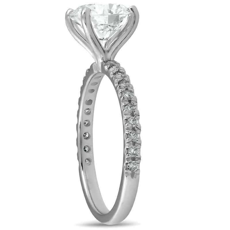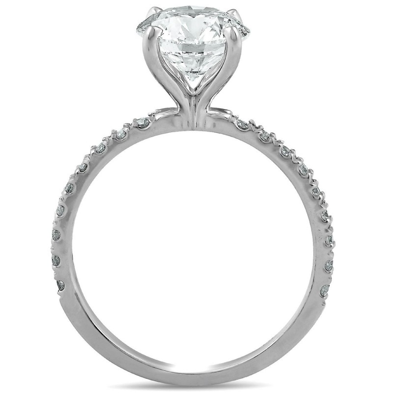 Anello di fidanzamento solitario con diamante francese bianco pavé da 2 1/3 ct in oro bianco 14k